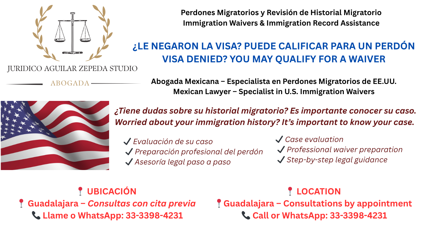 Abogada mexicana egresada de la Universidad de Guadalajara, Licenciada en Derecho y Maestra en Administración de Negocios. Cuento con formación jurídica sólida y experiencia en el ámbito legal, con enfoque en el área de derecho migratorio de los Estados Unidos, especialmente en el análisis y preparación de casos de perdones migratorios (waivers).